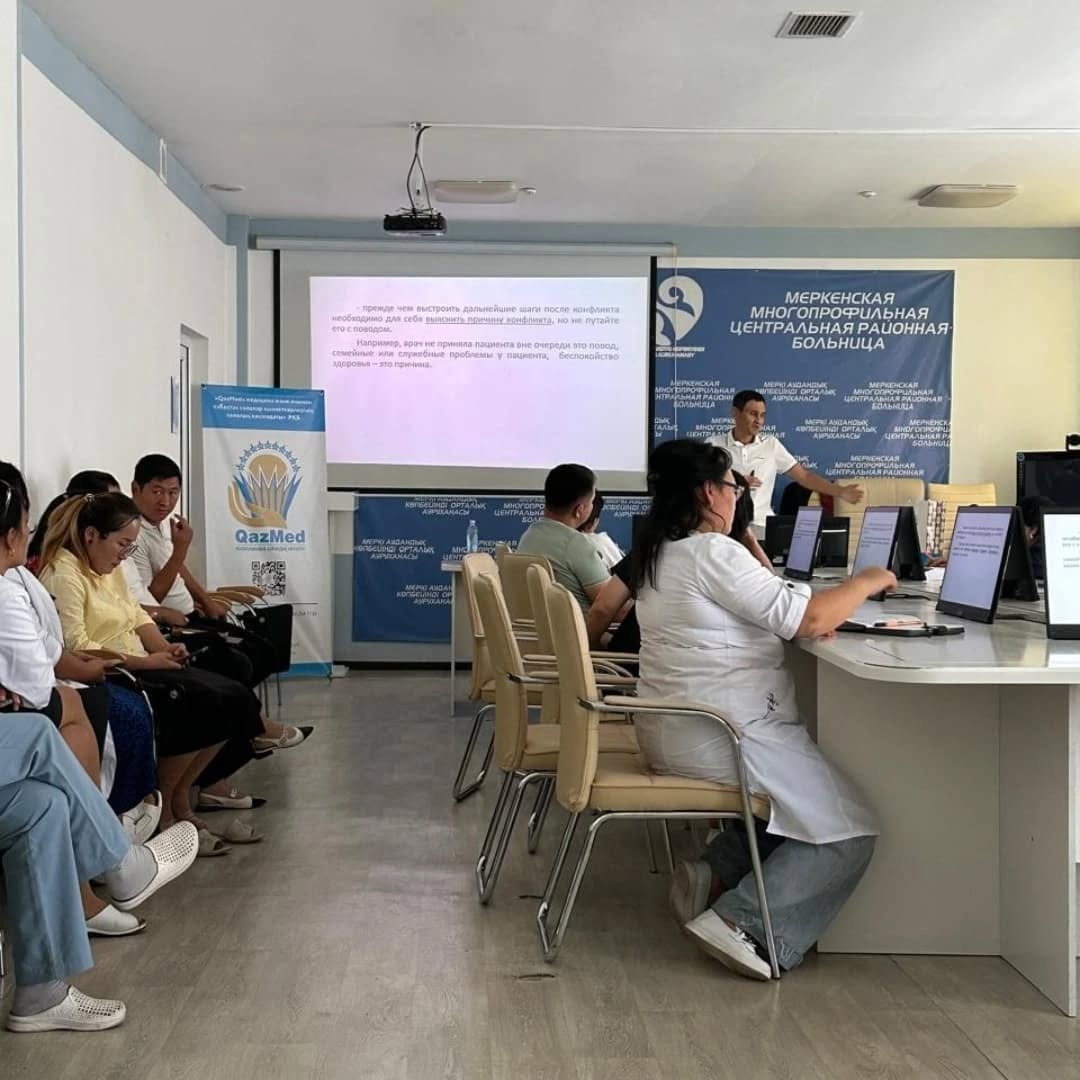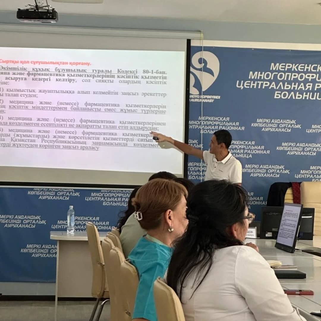 9 сентября в Жамбылской области в Меркенской многопрофильной центральной районной больницы прошёл первый день из двухдневного обучающего семинара на тему «Актуальные правовые вопросы в современной системе здравоохранения», организованный отраслевым профсоюзом «QazMed» для членов профсоюза - медицинских работников учреждений здравоохранения Кордайского, Шуского, Мойынкумского районов и района имени Т. Рыскулова.