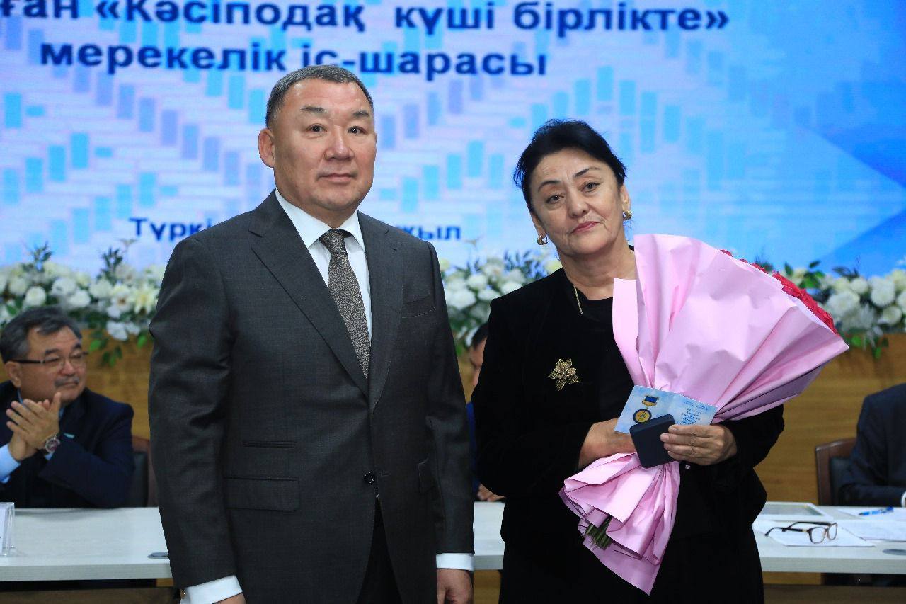 7 октября в Туркестане, в центре «Ұлы Дала Елі», состоялась торжественная церемония награждения членов профсоюза. В мероприятии приняли участие отраслевые и территориальные профсоюзные организации региона, в ходе которого были вручены нагрудные знаки и почётные грамоты сотрудникам, проявившим особые трудовые заслуги в течение года.