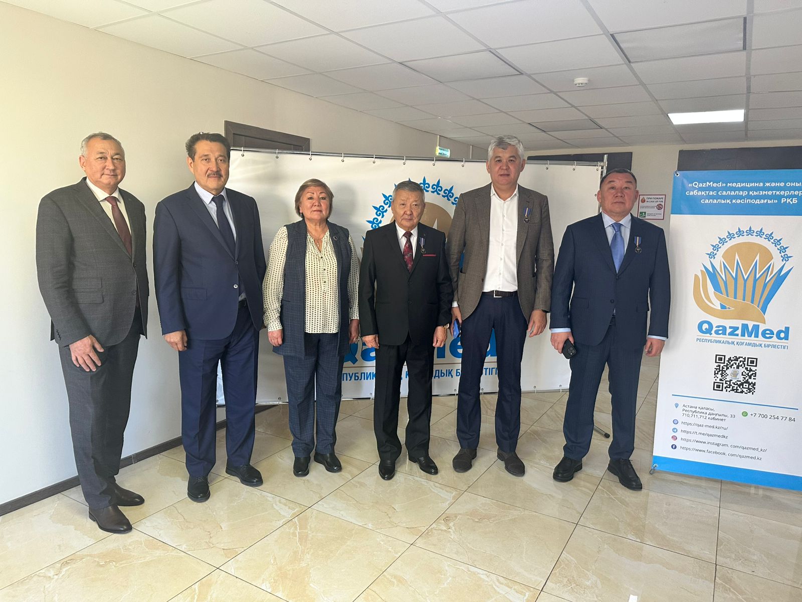 В этот торжественный день в Отраслевом профессиональном союзе работников медицины «QazMed» праздник отметили с глубоким чувством гордости и признательности. Председатель профсоюза Алиакпар Болатович Матишев вручил юбилейные медали Федерации профсоюзов Республики Казахстан «Қазақстан кәсіподақ қозғалысына 120 жыл» — знаки особого уважения, признания заслуг и символ единства профсоюзов.